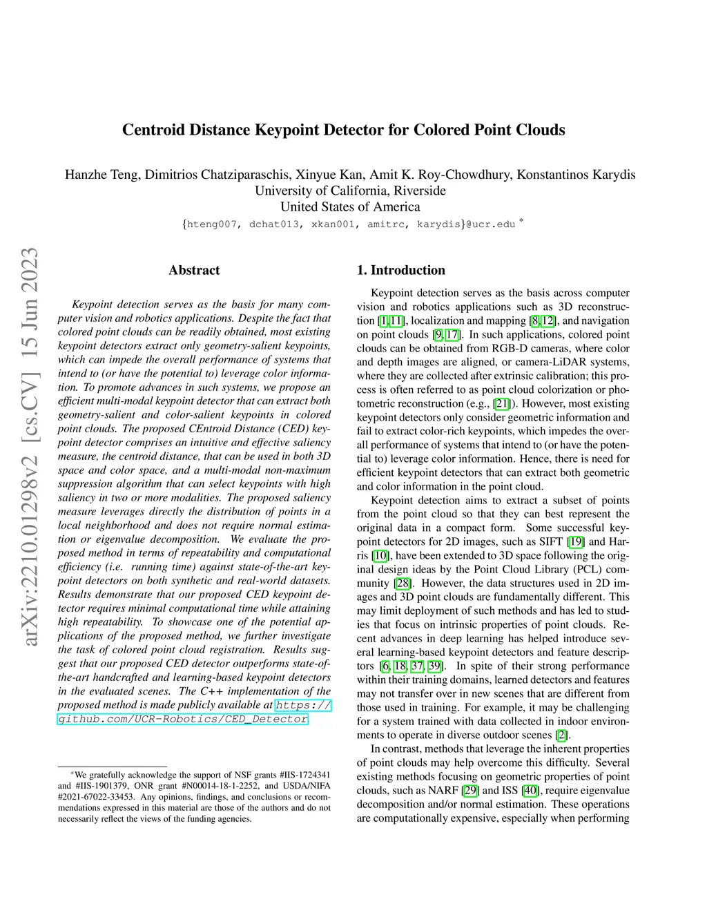 Centroid Distance Keypoint Detector for Colored Point Clouds
