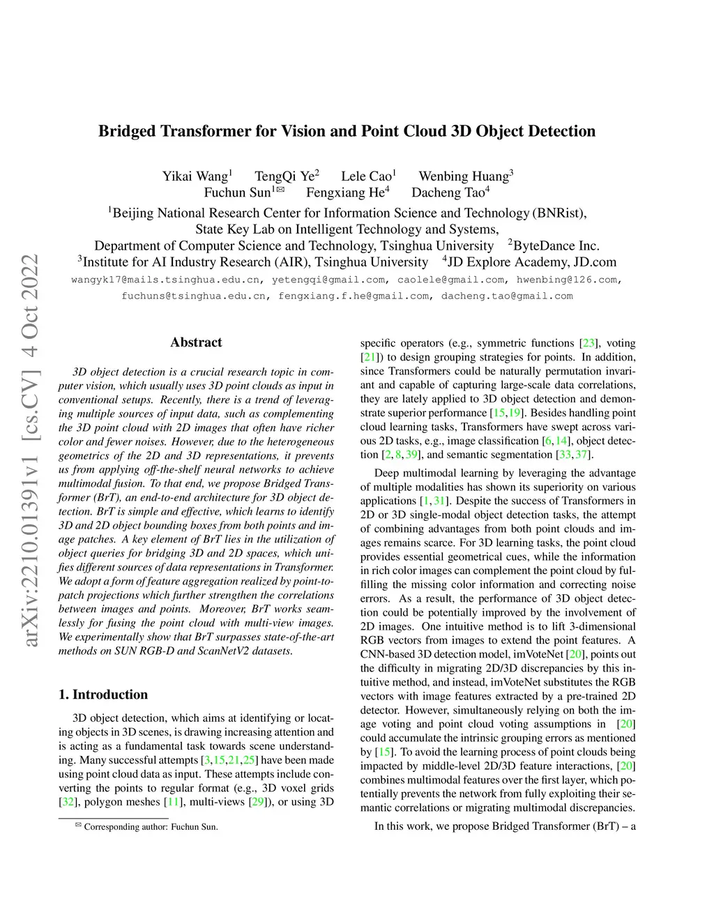 Bridged Transformer for Vision and Point Cloud 3D Object Detection