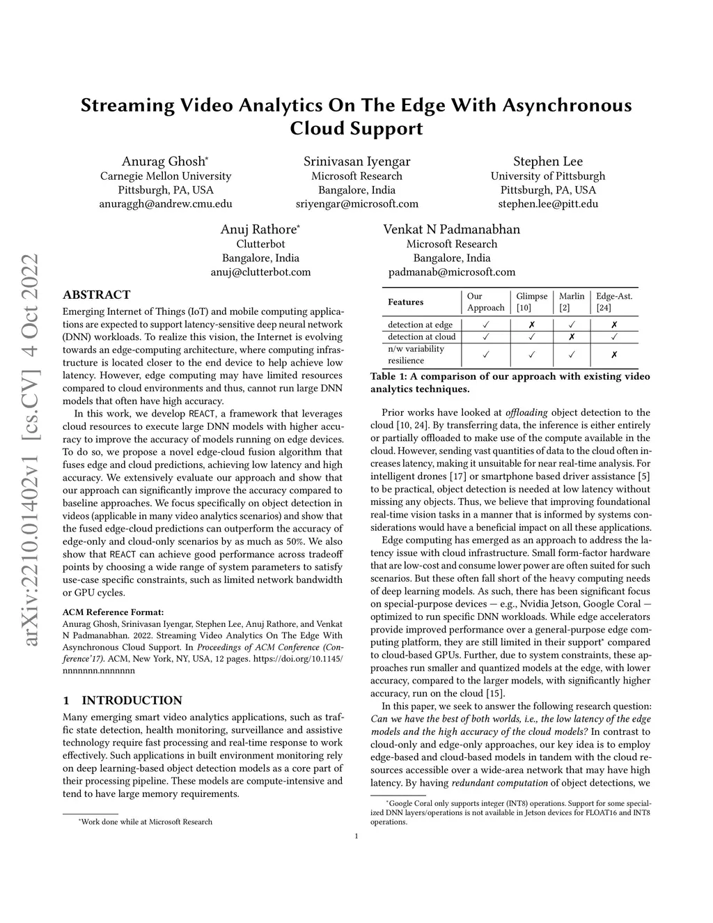 Streaming Video Analytics On The Edge With Asynchronous Cloud Support