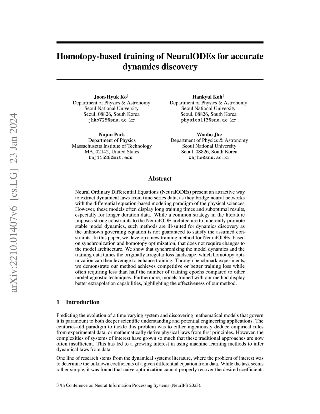 Homotopy-based training of NeuralODEs for accurate dynamics discovery