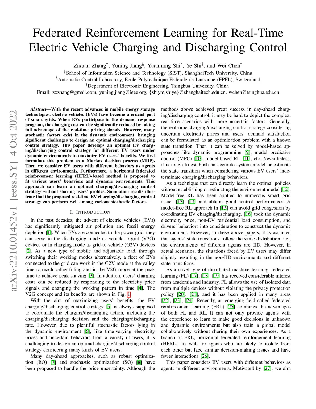 Federated Reinforcement Learning for Real-Time Electric Vehicle Charging