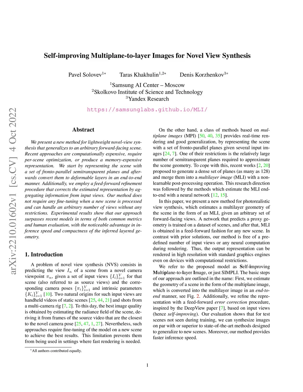 Self-improving Multiplane-to-layer Images for Novel View Synthesis