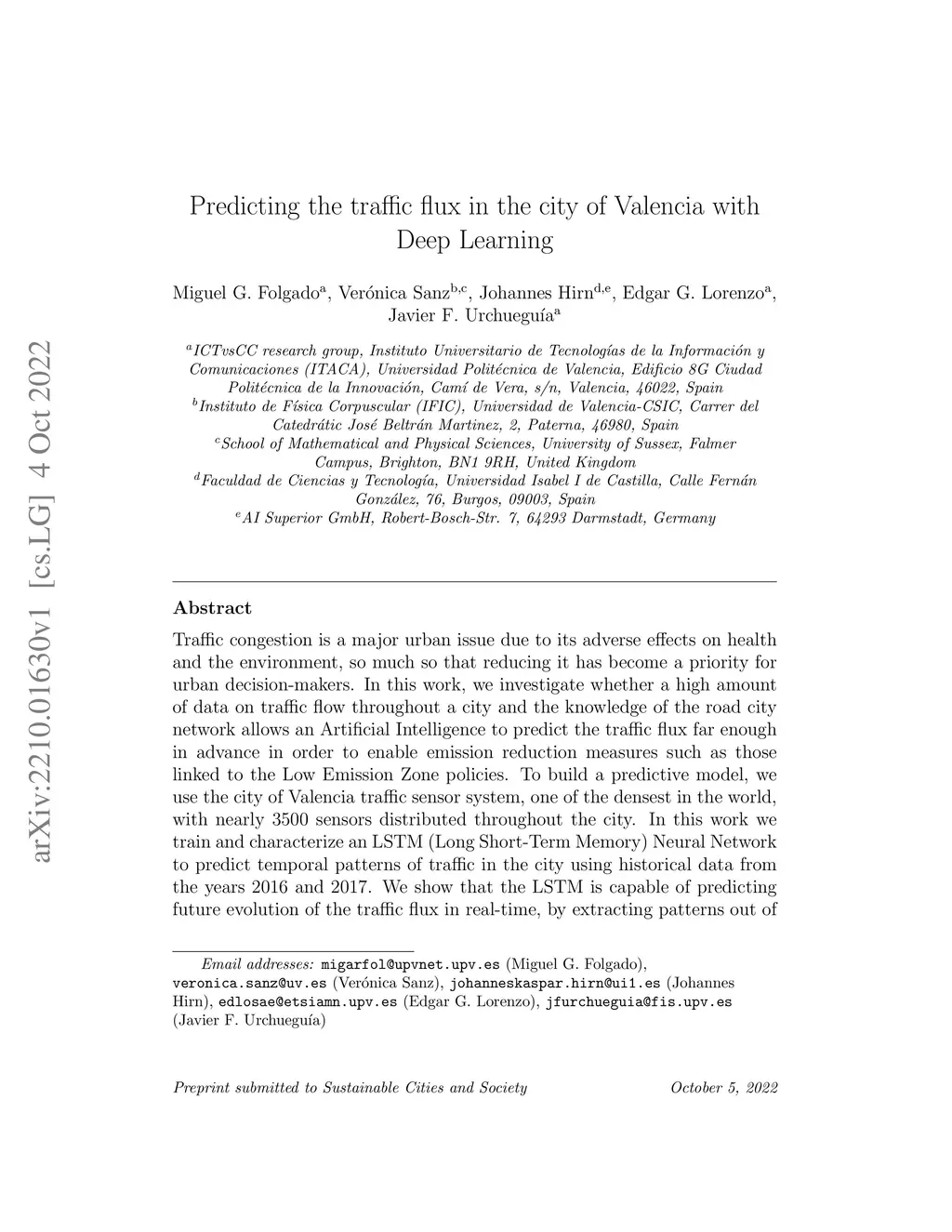 Predicting the traffic flux in the city of Valencia with Deep Learning