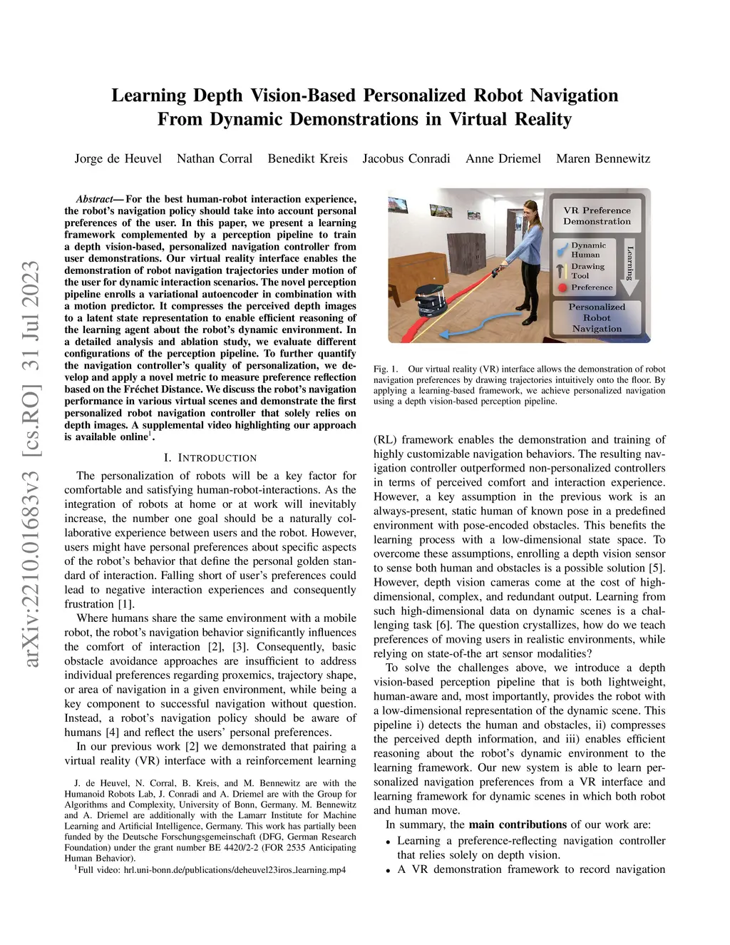 Learning Depth Vision-Based Personalized Robot Navigation From Dynamic