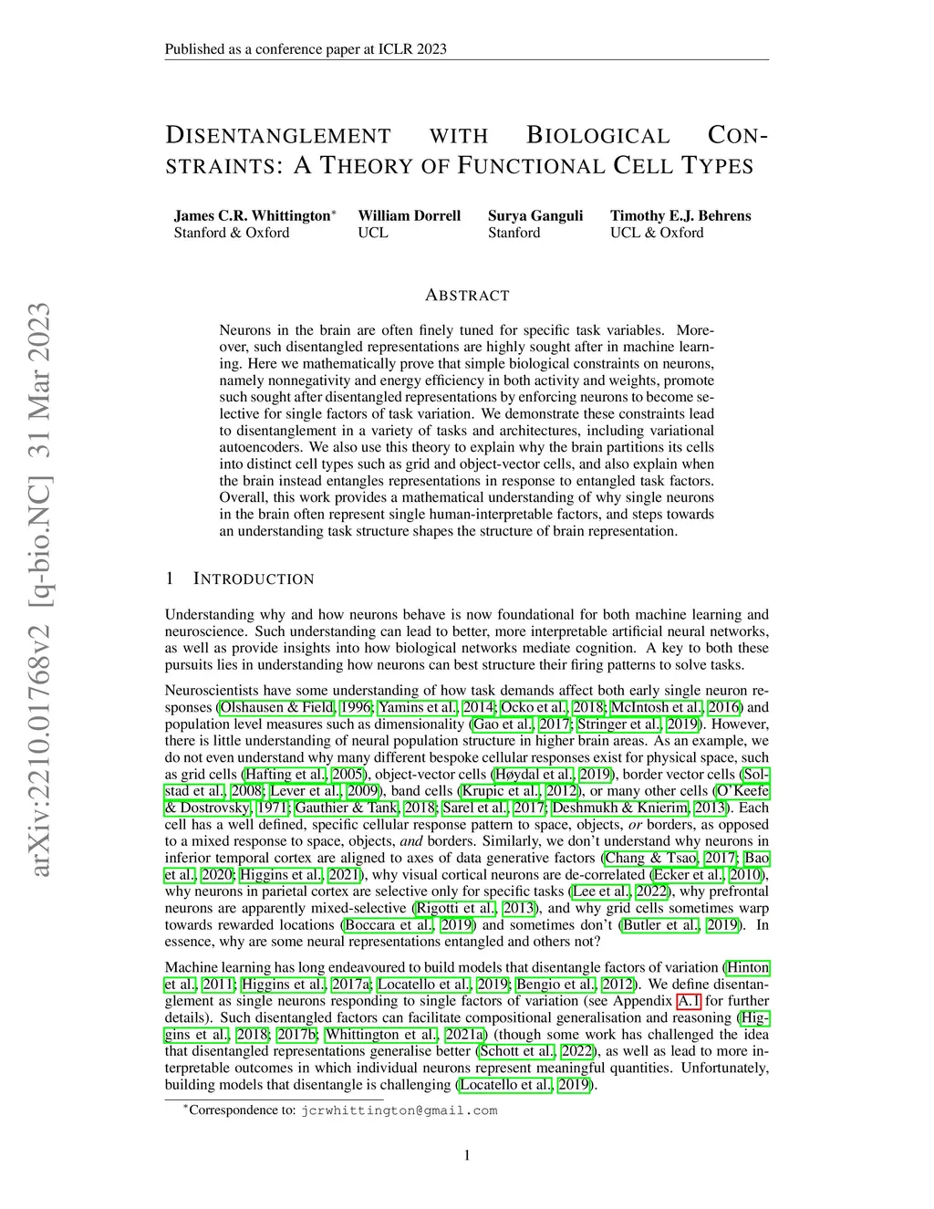 Disentanglement with Biological Constraints: A Theory of Functional Cell