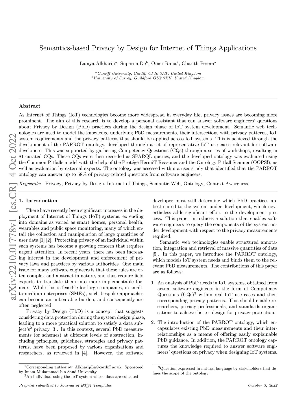 As Internet of Things (IoT) technologies become more widespread in everyday life, privacy issues are becoming more prominent. The aim of this research is to develop a personal assistant that can answer software engineers' questions about Privacy by Design (PbD) practices during the design phase of IoT system development. Semantic web technologies are used to model the knowledge underlying PbD measurements, their intersections with privacy patterns, IoT system requirements and the privacy patterns that should be applied across IoT systems. This is achieved through the development of the PARROT ontology, developed through a set of representative IoT use cases relevant for software developers. This was supported by gathering Competency Questions (CQs) through a series of workshops, resulting in 81 curated CQs. These CQs were then recorded as SPARQL queries, and the developed ontology was evaluated using the Common Pitfalls model with the help of the Prot\ég\é HermiT Reasoner and the Ontology Pitfall Scanner (OOPS!), as well as evaluation by external experts. The ontology was assessed within a user study that identified that the PARROT ontology can answer up to 58\% of privacy-related questions from software engineers.