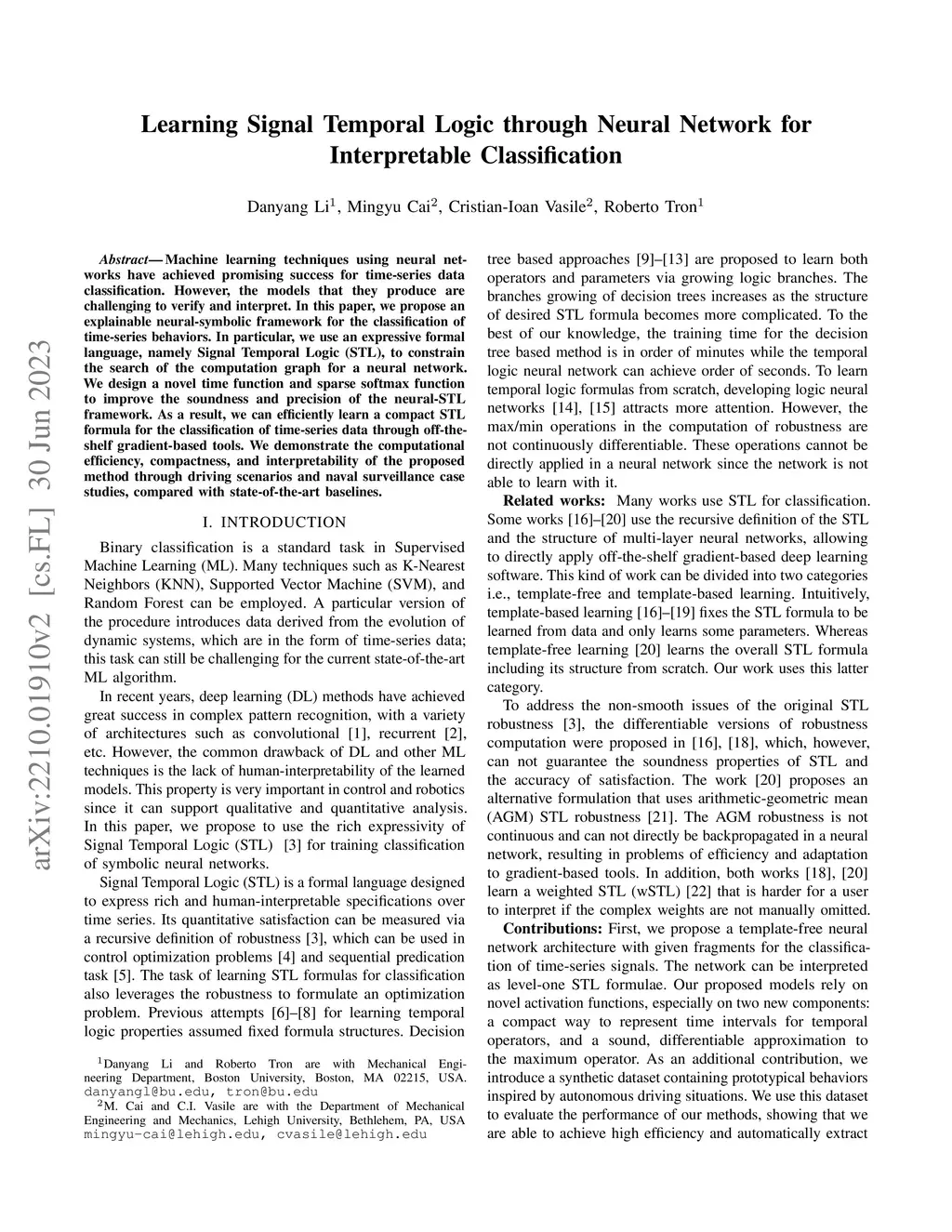 Learning Signal Temporal Logic through Neural Network for Interpretable