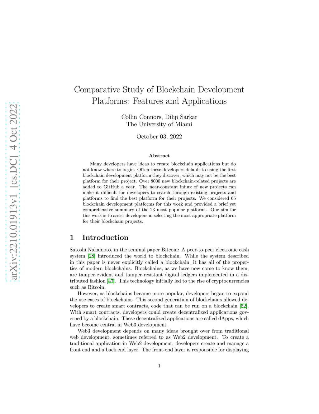 Many developers have ideas to create blockchain applications but do not know where to begin. Often these developers default to using the first blockchain development platform they discover, which may not be the best platform for their project. Over 8000 new blockchain-related projects are added to GitHub a year. The near-constant influx of new projects can make it difficult for developers to search through existing projects and platforms to find the best platform for their projects. We considered 65 blockchain development platforms for this work and provided a brief yet comprehensive summary of the 23 most popular platforms. Our aim for this work is to assist developers in selecting the most appropriate platform for their blockchain projects.