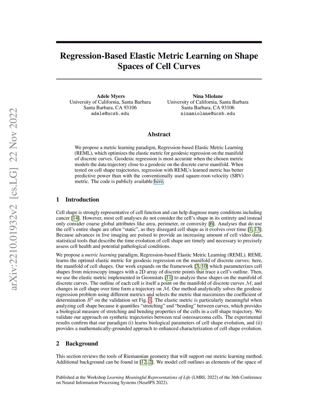 We propose a metric learning paradigm, Regression-based Elastic Metric Learning (REML), which optimizes the elastic metric for geodesic regression on the manifold of discrete curves. Geodesic regression is most accurate when the chosen metric models the data trajectory close to a geodesic on the discrete curve manifold. When tested on cell shape trajectories, regression with REML's learned metric has better predictive power than with the conventionally used square-root-velocity (SRV) metric.
