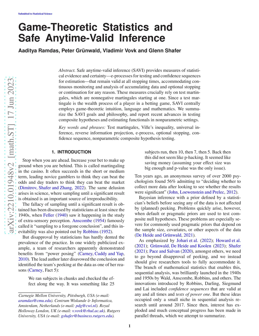 Safe anytime-valid inference (SAVI) provides measures of statistical evidence and certainty -- e-processes for testing and confidence sequences for estimation -- that remain valid at all stopping times, accommodating continuous monitoring and analysis of accumulating data and optional stopping or continuation for any reason. These measures crucially rely on test martingales, which are nonnegative martingales starting at one. Since a test martingale is the wealth process of a player in a betting game, SAVI centrally employs game-theoretic intuition, language and mathematics. We summarize the SAVI goals and philosophy, and report recent advances in testing composite hypotheses and estimating functionals in nonparametric settings.