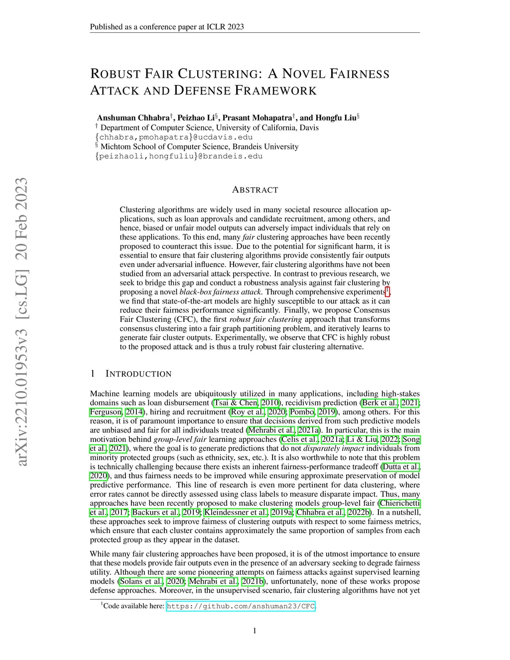 Clustering algorithms are widely used in many societal resource allocation applications, such as loan approvals and candidate recruitment, among others, and hence, biased or unfair model outputs can adversely impact individuals that rely on these applications. To this end, many fair clustering approaches have been recently proposed to counteract this issue. Due to the potential for significant harm, it is essential to ensure that fair clustering algorithms provide consistently fair outputs even under adversarial influence. However, fair clustering algorithms have not been studied from an adversarial attack perspective. In contrast to previous research, we seek to bridge this gap and conduct a robustness analysis against fair clustering by proposing a novel black-box fairness attack. Through comprehensive experiments, we find that state-of-the-art models are highly susceptible to our attack as it can reduce their fairness performance significantly. Finally, we propose Consensus Fair Clustering (CFC), the first robust fair clustering approach that transforms consensus clustering into a fair graph partitioning problem, and iteratively learns to generate fair cluster outputs. Experimentally, we observe that CFC is highly robust to the proposed attack and is thus a truly robust fair clustering alternative.