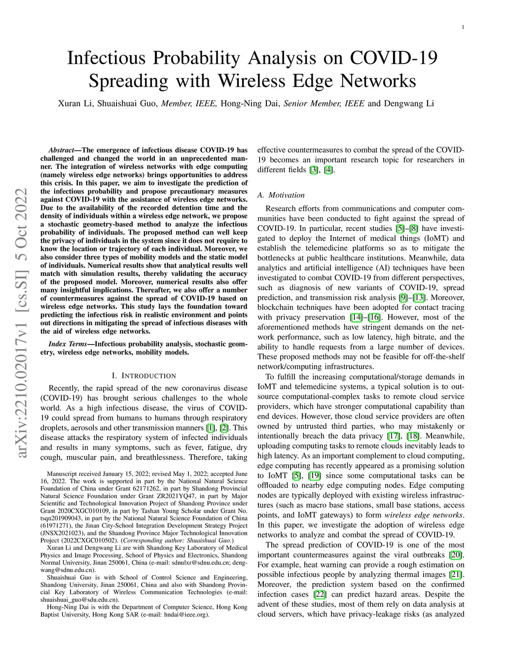 Infectious Probability Analysis on COVID-19 Spreading with Wireless Edge