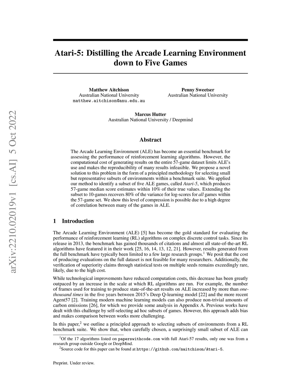 Atari-5: Distilling the Arcade Learning Environment down to Five Games