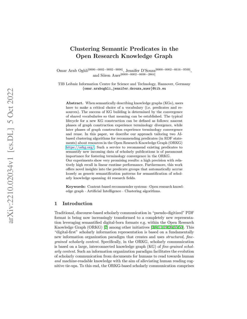 Clustering Semantic Predicates in the Open Research Knowledge Graph