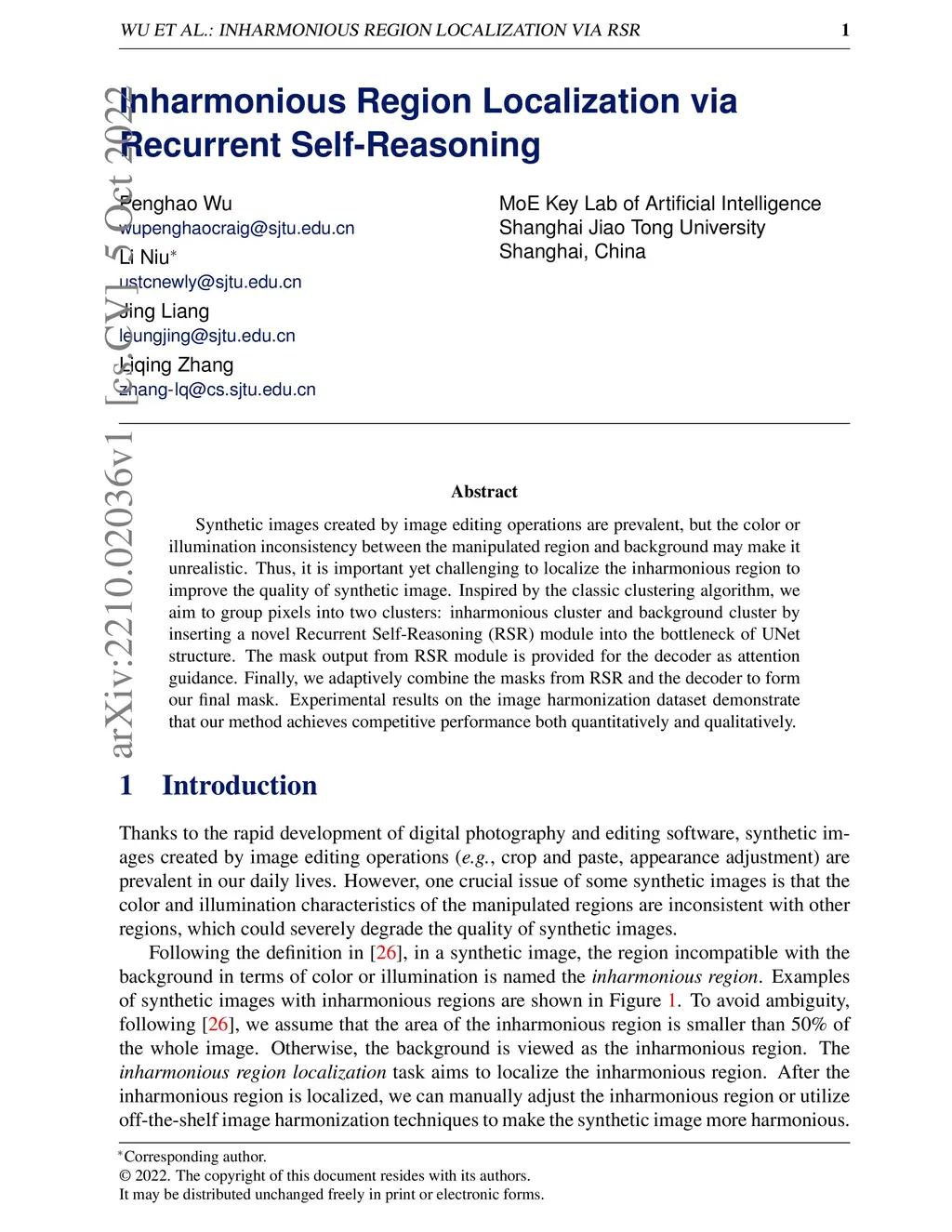 Inharmonious Region Localization via Recurrent Self-Reasoning