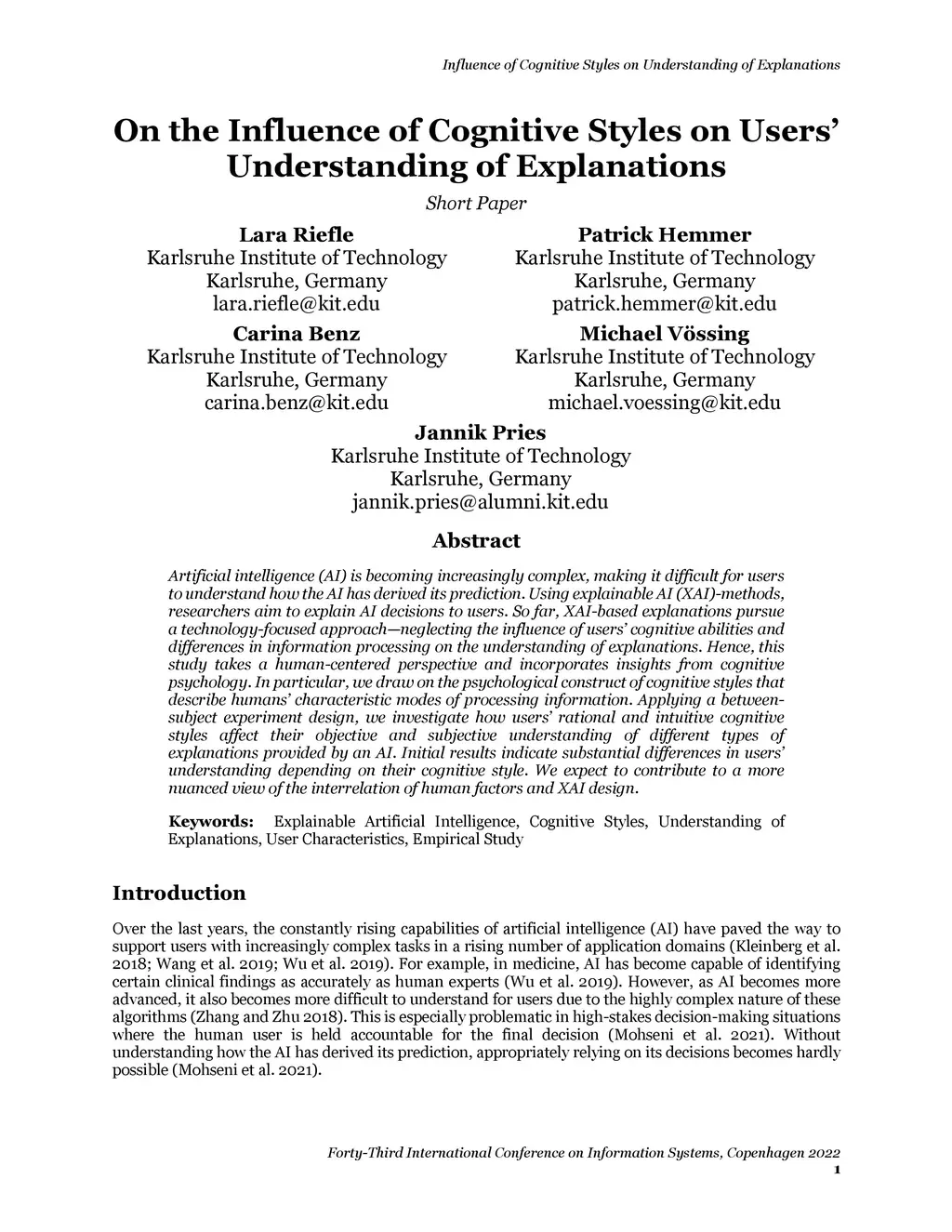 On the Influence of Cognitive Styles on Users' Understanding of