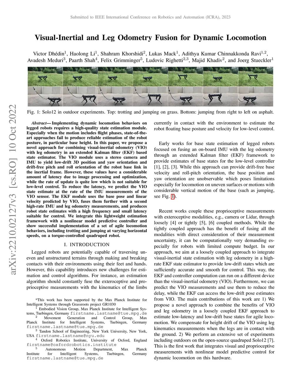 Visual-Inertial and Leg Odometry Fusion for Dynamic Locomotion