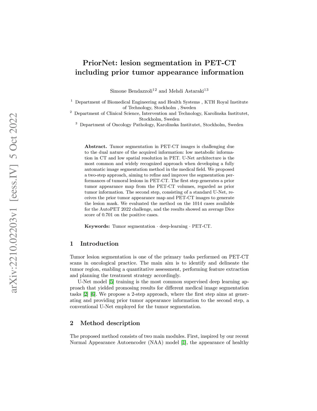PriorNet: lesion segmentation in PET-CT including prior tumor appearance