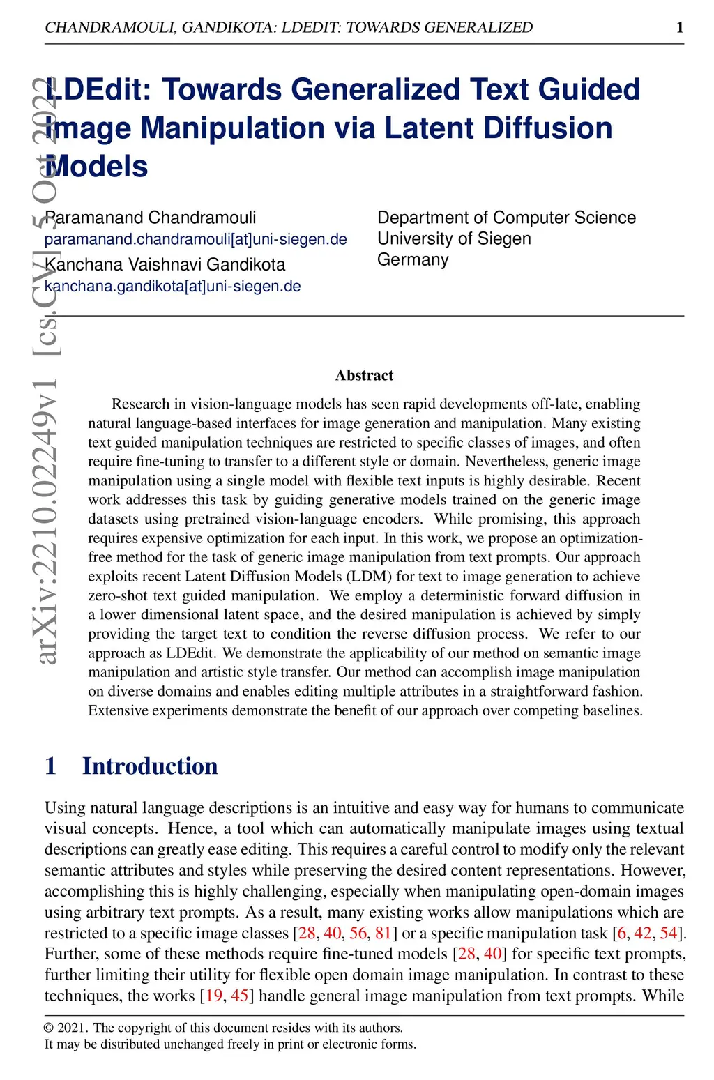 LDEdit: Towards Generalized Text Guided Image Manipulation via Latent