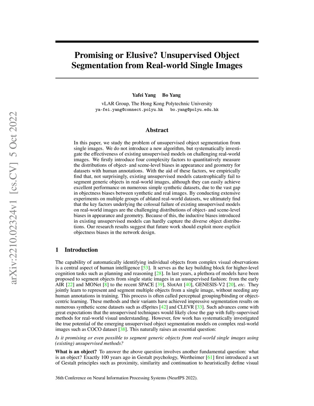 In this paper, we study the problem of unsupervised object segmentation from single images. We do not introduce a new algorithm, but systematically investigate the effectiveness of existing unsupervised models on challenging real-world images. We firstly introduce four complexity factors to quantitatively measure the distributions of object- and scene-level biases in appearance and geometry for datasets with human annotations. With the aid of these factors, we empirically find that, not surprisingly, existing unsupervised models catastrophically fail to segment generic objects in real-world images, although they can easily achieve excellent performance on numerous simple synthetic datasets, due to the vast gap in objectness biases between synthetic and real images. By conducting extensive experiments on multiple groups of ablated real-world datasets, we ultimately find that the key factors underlying the colossal failure of existing unsupervised models on real-world images are the challenging distributions of object- and scene-level biases in appearance and geometry. Because of this, the inductive biases introduced in existing unsupervised models can hardly capture the diverse object distributions. Our research results suggest that future work should exploit more explicit objectness biases in the network design.