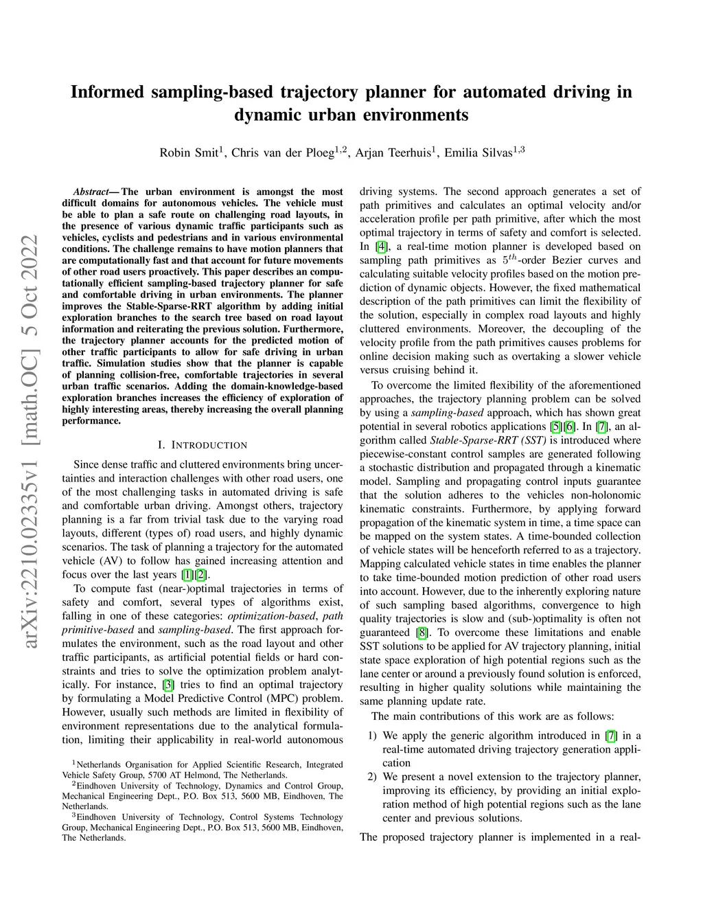 Informed sampling-based trajectory planner for automated driving in