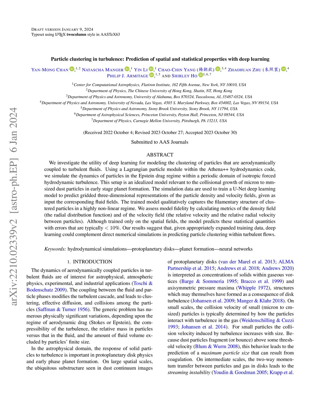 We investigate the utility of deep learning for modeling the clustering of particles that are aerodynamically coupled to turbulent fluids. Using a Lagrangian particle module within the Athena++ hydrodynamics code, we simulate the dynamics of particles in the Epstein drag regime within a periodic domain of isotropic forced hydrodynamic turbulence. This setup is an idealized model relevant to the collisional growth of micron to mm-sized dust particles in early stage planet formation. The simulation data are used to train a U-Net deep learning model to predict gridded three-dimensional representations of the particle density and velocity fields, given as input the corresponding fluid fields. The trained model qualitatively captures the filamentary structure of clustered particles in a highly non-linear regime. We assess model fidelity by calculating metrics of the density field (the radial distribution function) and of the velocity field (the relative velocity and the relative radial velocity between particles). Although trained only on the spatial fields, the model predicts these statistical quantities with errors that are typically <10%. Our results suggest that, given appropriately expanded training data, deep learning could complement direct numerical simulations in predicting particle clustering within turbulent flows.