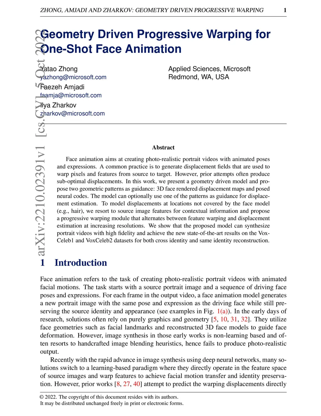 Geometry Driven Progressive Warping for One-Shot Face Animation