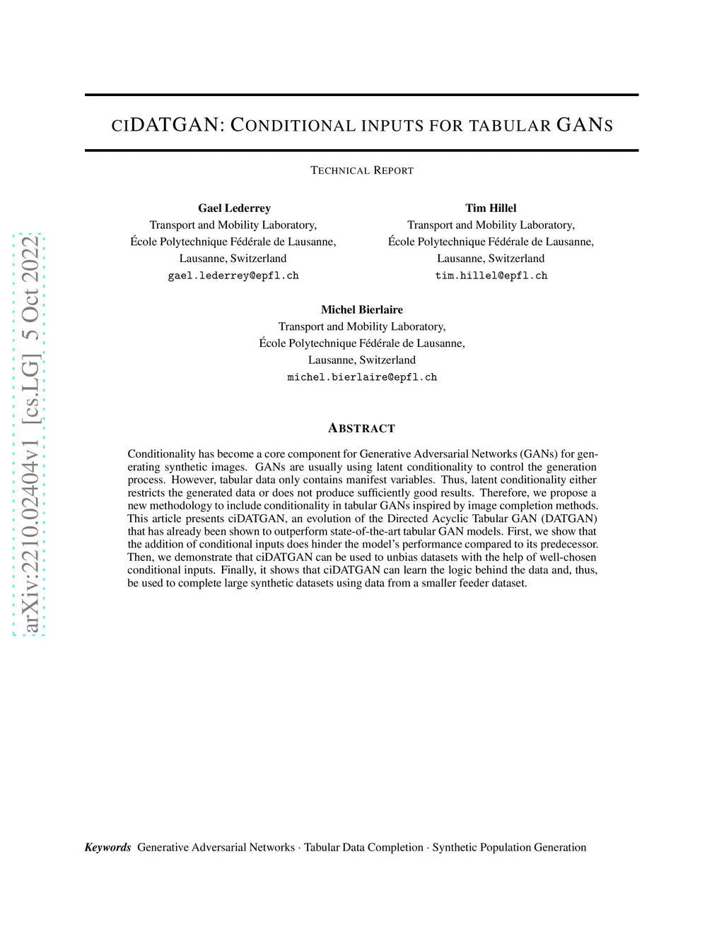ciDATGAN: Conditional Inputs for Tabular GANs