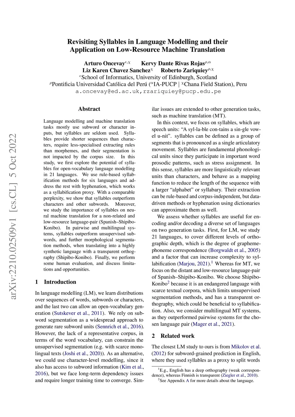Language modelling and machine translation tasks mostly use subword or character inputs, but syllables are seldom used. Syllables provide shorter sequences than characters, require less-specialised extracting rules than morphemes, and their segmentation is not impacted by the corpus size. In this study, we first explore the potential of syllables for open-vocabulary language modelling in 21 languages. We use rule-based syllabification methods for six languages and address the rest with hyphenation, which works as a syllabification proxy. With a comparable perplexity, we show that syllables outperform characters and other subwords. Moreover, we study the importance of syllables on neural machine translation for a non-related and low-resource language-pair (Spanish--Shipibo-Konibo). In pairwise and multilingual systems, syllables outperform unsupervised subwords, and further morphological segmentation methods, when translating into a highly synthetic language with a transparent orthography (Shipibo-Konibo). Finally, we perform some human evaluation, and discuss limitations and opportunities.