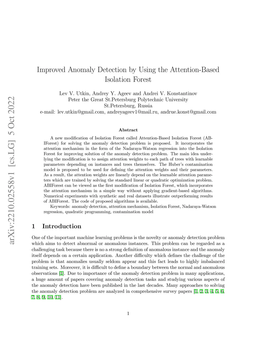 Improved Anomaly Detection by Using the Attention-Based Isolation Forest