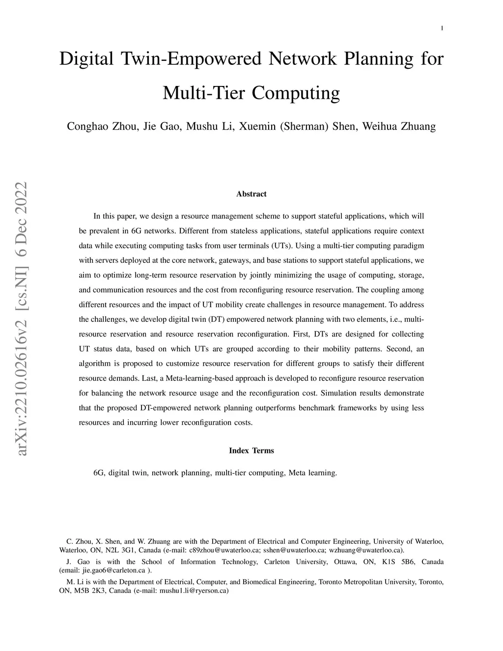 In this paper, we design a resource management scheme to support stateful applications, which will be prevalent in 6G networks. Different from stateless applications, stateful applications require context data while executing computing tasks from user terminals (UTs). Using a multi-tier computing paradigm with servers deployed at the core network, gateways, and base stations to support stateful applications, we aim to optimize long-term resource reservation by jointly minimizing the usage of computing, storage, and communication resources and the cost from reconfiguring resource reservation. The coupling among different resources and the impact of UT mobility create challenges in resource management. To address the challenges, we develop digital twin (DT) empowered network planning with two elements, i.e., multi-resource reservation and resource reservation reconfiguration. First, DTs are designed for collecting UT status data, based on which UTs are grouped according to their mobility patterns. Second, an algorithm is proposed to customize resource reservation for different groups to satisfy their different resource demands. Last, a Meta-learning-based approach is developed to reconfigure resource reservation for balancing the network resource usage and the reconfiguration cost. Simulation results demonstrate that the proposed DT-empowered network planning outperforms benchmark frameworks by using less resources and incurring lower reconfiguration costs.
