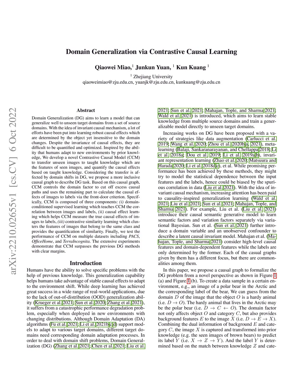 Domain Generalization (DG) aims to learn a model that can generalize well to unseen target domains from a set of source domains. With the idea of invariant causal mechanism, a lot of efforts have been put into learning robust causal effects which are determined by the object yet insensitive to the domain changes. Despite the invariance of causal effects, they are difficult to be quantified and optimized. Inspired by the ability that humans adapt to new environments by prior knowledge, We develop a novel Contrastive Causal Model (CCM) to transfer unseen images to taught knowledge which are the features of seen images, and quantify the causal effects based on taught knowledge. Considering the transfer is affected by domain shifts in DG, we propose a more inclusive causal graph to describe DG task. Based on this causal graph, CCM controls the domain factor to cut off excess causal paths and uses the remaining part to calculate the causal effects of images to labels via the front-door criterion. Specifically, CCM is composed of three components: (i) domain-conditioned supervised learning which teaches CCM the correlation between images and labels, (ii) causal effect learning which helps CCM measure the true causal effects of images to labels, (iii) contrastive similarity learning which clusters the features of images that belong to the same class and provides the quantification of similarity. Finally, we test the performance of CCM on multiple datasets including PACS, OfficeHome, and TerraIncognita. The extensive experiments demonstrate that CCM surpasses the previous DG methods with clear margins.