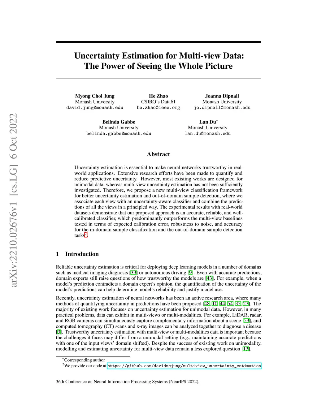 Uncertainty Estimation for Multi-view Data: The Power of Seeing the
