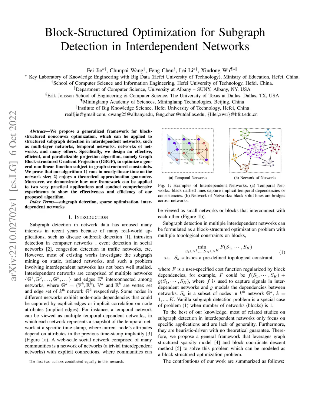 Block-Structured Optimization for Subgraph Detection in Interdependent