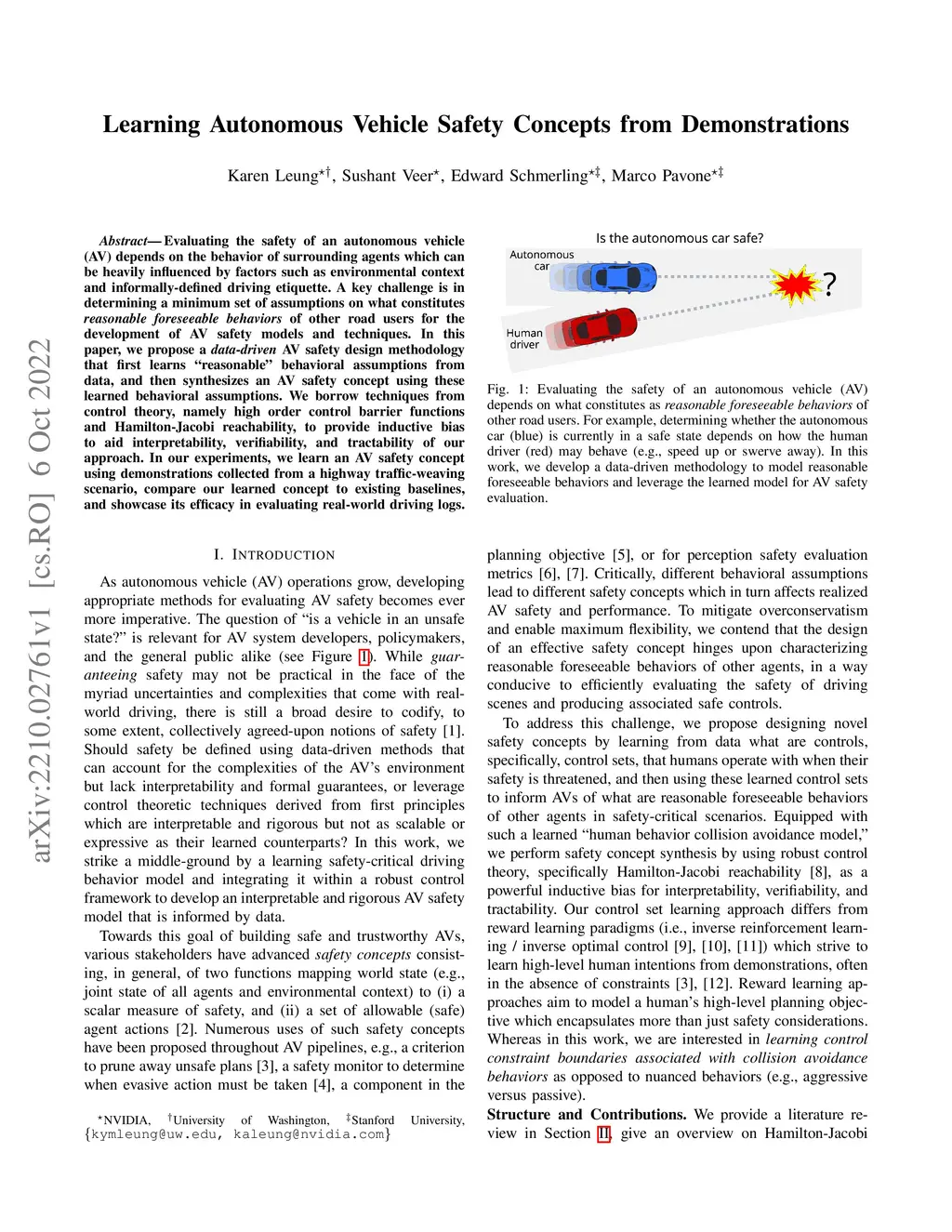 Learning Autonomous Vehicle Safety Concepts from Demonstrations