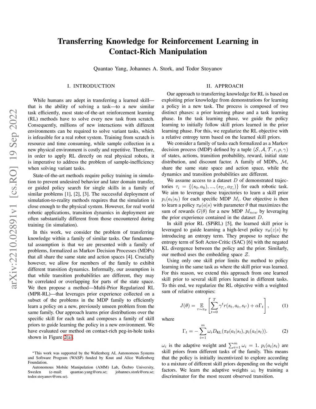 Transferring Knowledge for Reinforcement Learning in Contact-Rich