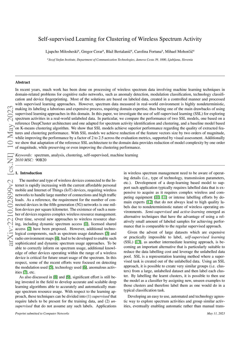 Self-supervised Learning for Clustering of Wireless Spectrum Activity