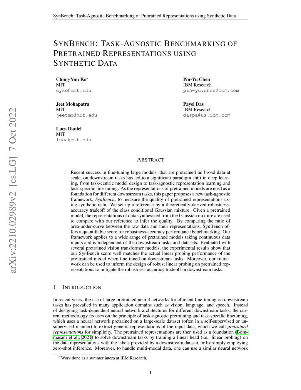 SynBench: Task-Agnostic Benchmarking of Pretrained Representations using