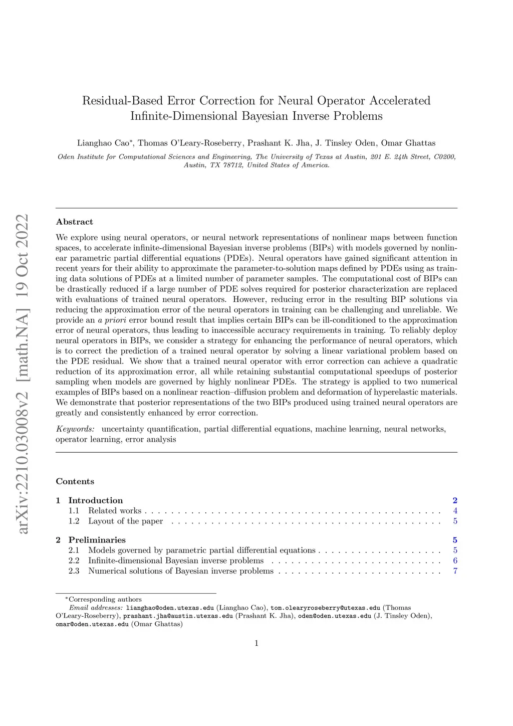 We explore using neural operators, or neural network representations of nonlinear maps between function spaces, to accelerate infinite-dimensional Bayesian inverse problems (BIPs) with models governed by nonlinear parametric partial differential equations (PDEs). Neural operators have gained significant attention in recent years for their ability to approximate the parameter-to-solution maps defined by PDEs using as training data solutions of PDEs at a limited number of parameter samples. The computational cost of BIPs can be drastically reduced if the large number of PDE solves required for posterior characterization are replaced with evaluations of trained neural operators. However, reducing error in the resulting BIP solutions via reducing the approximation error of the neural operators in training can be challenging and unreliable. We provide an a priori error bound result that implies certain BIPs can be ill-conditioned to the approximation error of neural operators, thus leading to inaccessible accuracy requirements in training. To reliably deploy neural operators in BIPs, we consider a strategy for enhancing the performance of neural operators, which is to correct the prediction of a trained neural operator by solving a linear variational problem based on the PDE residual. We show that a trained neural operator with error correction can achieve a quadratic reduction of its approximation error, all while retaining substantial computational speedups of posterior sampling when models are governed by highly nonlinear PDEs. The strategy is applied to two numerical examples of BIPs based on a nonlinear reaction--diffusion problem and deformation of hyperelastic materials. We demonstrate that posterior representations of the two BIPs produced using trained neural operators are greatly and consistently enhanced by error correction.