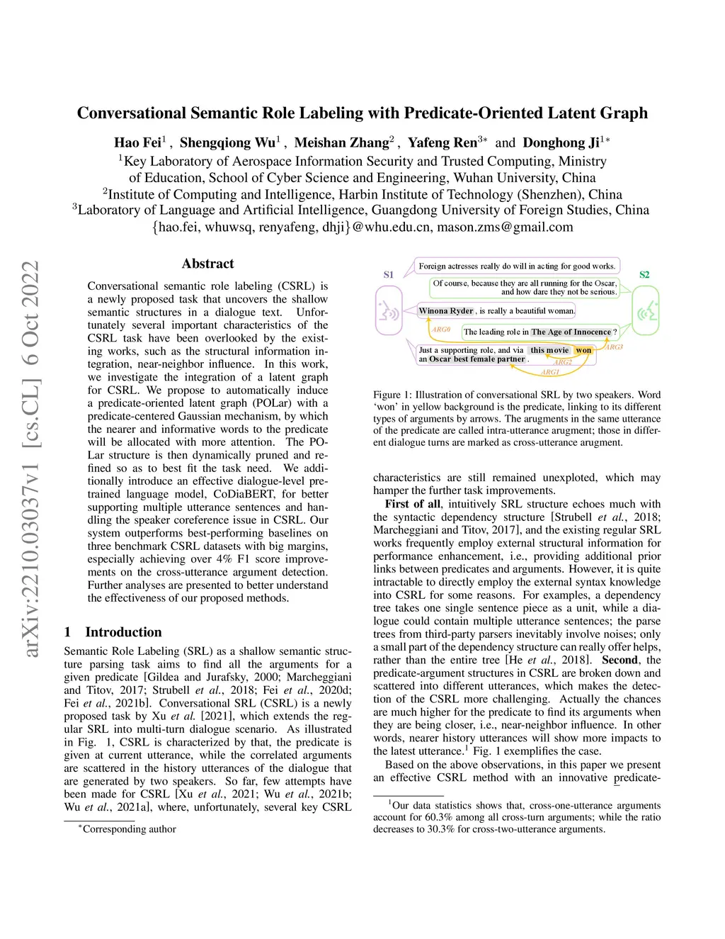 Conversational Semantic Role Labeling with Predicate-Oriented Latent