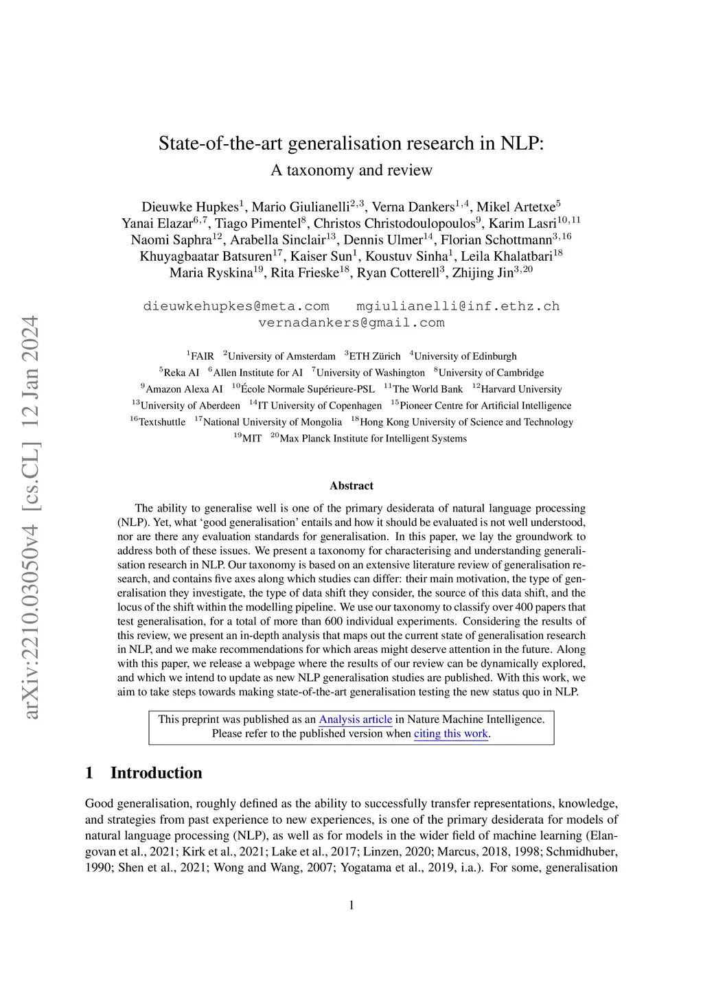 State-of-the-art generalisation research in NLP: A taxonomy and review