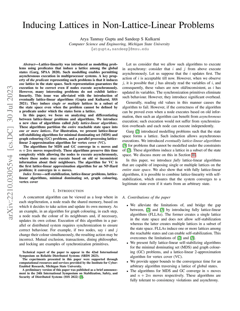 Lattice-linearity was introduced as modelling problems using predicates that induce a lattice among the global states (Garg, SPAA 2020). Such modelling enables permitting asynchronous execution in multiprocessor systems. A key property of \textit{the predicate} representing such problems is that it induces \textit{one} lattice in the state space. Such representation guarantees the execution to be correct even if nodes execute asynchronously. However, many interesting problems do not exhibit lattice-linearity. This issue was alleviated with the introduction of eventually lattice-linear algorithms (Gupta and Kulkarni, SSS 2021). They induce \textit{single or multiple} lattices in a subset of the state space even when the problem cannot be defined by a predicate under which the states form a lattice. In this paper, we focus on analyzing and differentiating between lattice-linear problems and algorithms. We introduce a new class of algorithms called \textit{fully lattice-linear algorithms}. These algorithms partition the \textit{entire} reachable state space into \textit{one or more lattices}. For illustration, we present lattice-linear self-stabilizing algorithms for minimal dominating set (MDS) and graph colouring (GC) problems, and a parallel processing lattice-linear 2-approximation algorithm for vertex cover (VC). The algorithms for MDS and GC converge in {\boldmath } moves and {\boldmath } moves respectively. These algorithms preserve this time complexity while allowing the nodes to execute asynchronously, where these nodes may execute based on old or inconsistent information about their neighbours. The algorithm for VC is the first lattice-linear approximation algorithm for an NP-Hard problem; it converges in {\boldmath } moves.