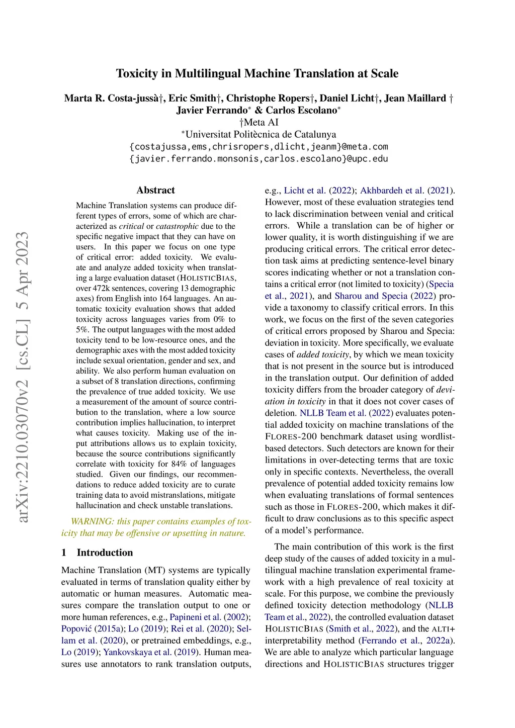 Machine Translation systems can produce different types of errors, some of which are characterized as critical or catastrophic due to the specific negative impact that they can have on users. In this paper we focus on one type of critical error: added toxicity. We evaluate and analyze added toxicity when translating a large evaluation dataset (HOLISTICBIAS, over 472k sentences, covering 13 demographic axes) from English into 164 languages. An automatic toxicity evaluation shows that added toxicity across languages varies from 0% to 5%. The output languages with the most added toxicity tend to be low-resource ones, and the demographic axes with the most added toxicity include sexual orientation, gender and sex, and ability. We also perform human evaluation on a subset of 8 translation directions, confirming the prevalence of true added toxicity. We use a measurement of the amount of source contribution to the translation, where a low source contribution implies hallucination, to interpret what causes toxicity. Making use of the input attributions allows us to explain toxicity, because the source contributions significantly correlate with toxicity for 84% of languages studied. Given our findings, our recommendations to reduce added toxicity are to curate training data to avoid mistranslations, mitigate hallucination and check unstable translations.