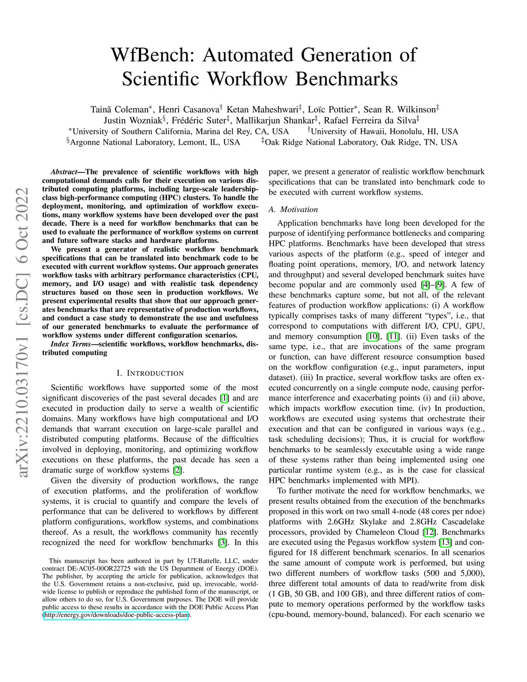 WfBench: Automated Generation of Scientific Workflow Benchmarks