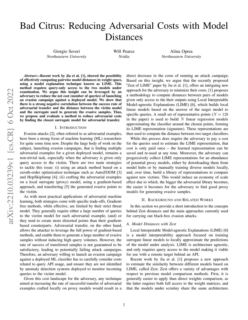Recent work by Jia et al., showed the possibility of effectively computing pairwise model distances in weight space, using a model explanation technique known as LIME. This method requires query-only access to the two models under examination. We argue this insight can be leveraged by an adversary to reduce the net cost (number of queries) of launching an evasion campaign against a deployed model. We show that there is a strong negative correlation between the success rate of adversarial transfer and the distance between the victim model and the surrogate used to generate the evasive samples. Thus, we propose and evaluate a method to reduce adversarial costs by finding the closest surrogate model for adversarial transfer.