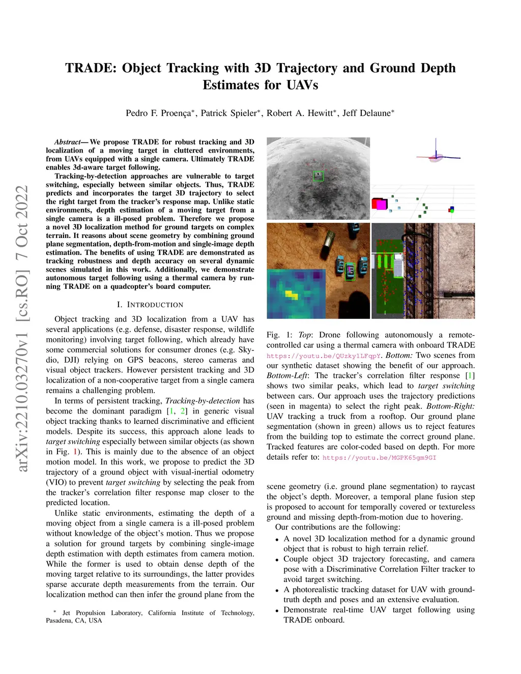 TRADE: Object Tracking with 3D Trajectory and Ground Depth Estimates for
