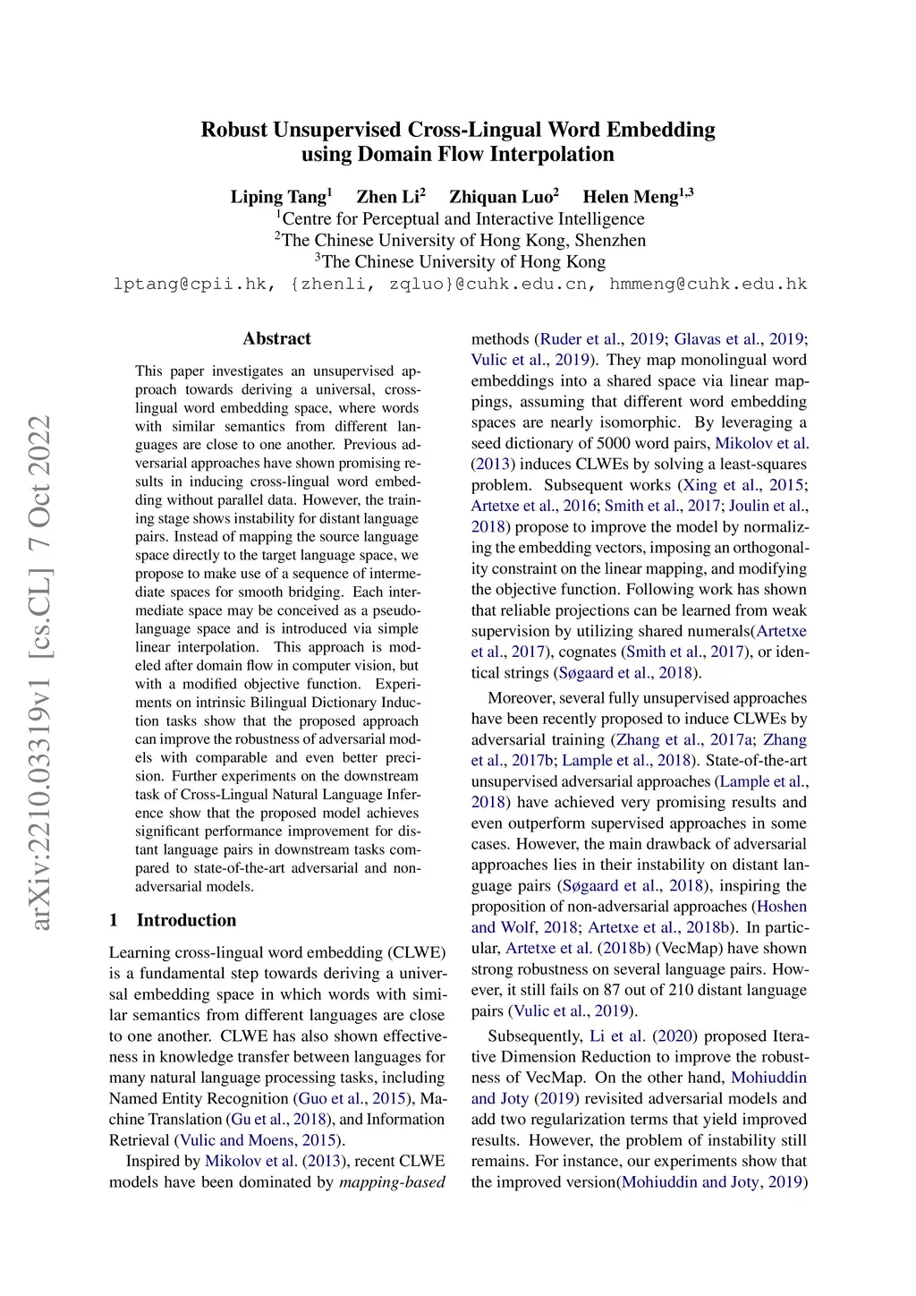 Robust Unsupervised Cross-Lingual Word Embedding using Domain Flow