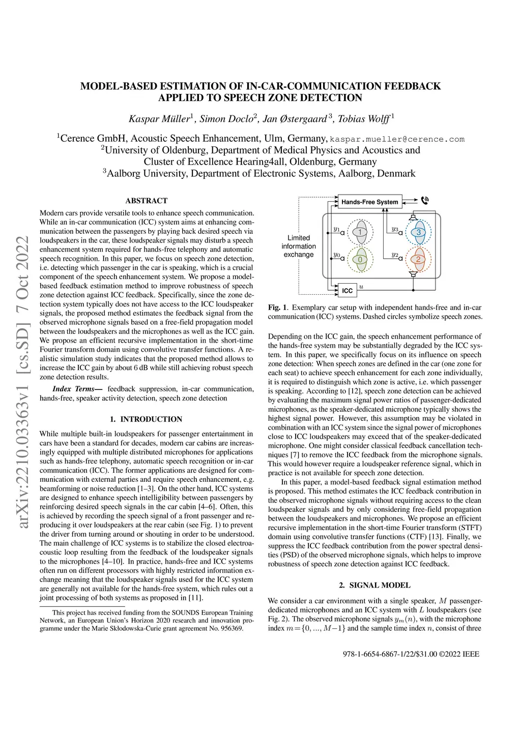 Model-based estimation of in-car-communication feedback applied to