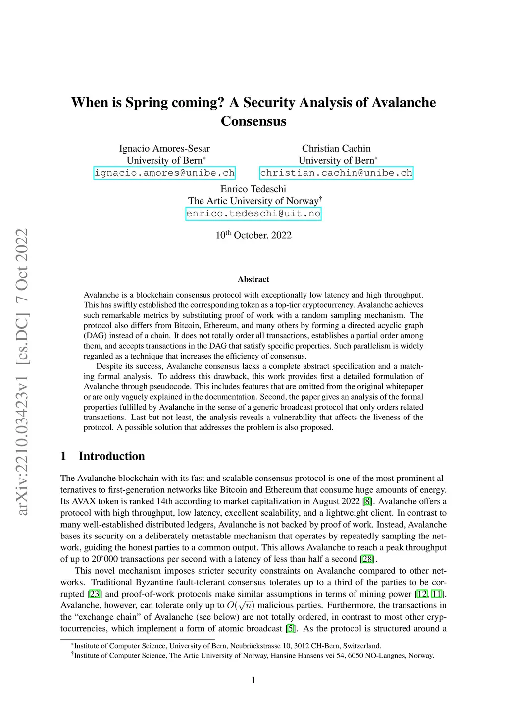 When is Spring coming? A Security Analysis of Avalanche Consensus