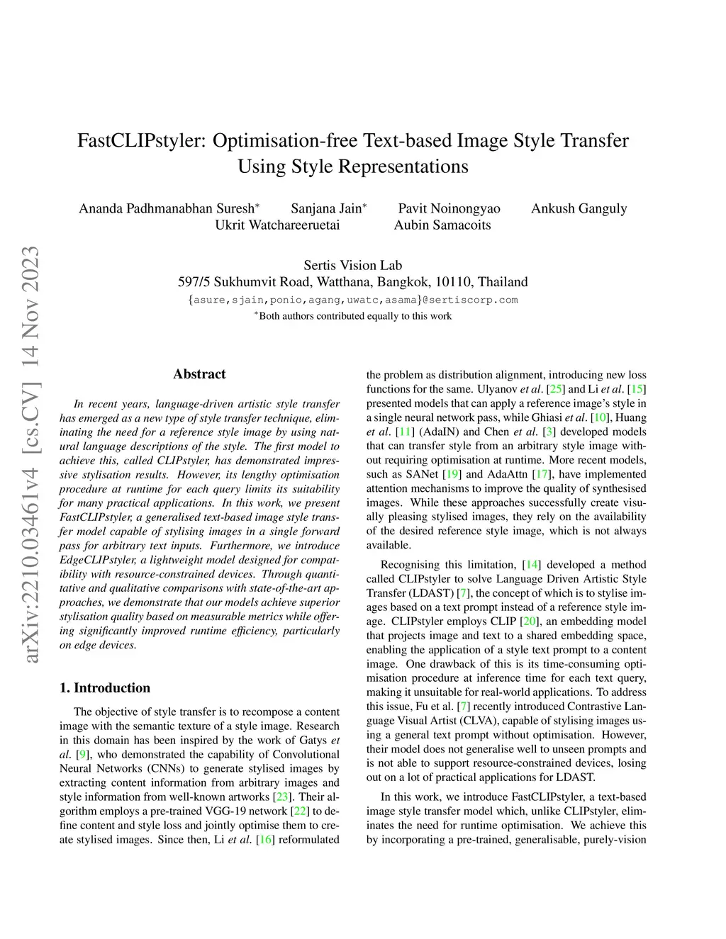 FastCLIPstyler: Optimisation-free Text-based Image Style Transfer Using